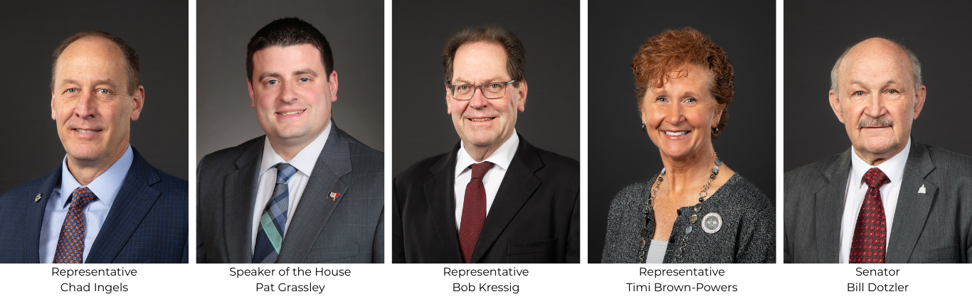 Speaker of the House Pat Grassley represents House District 57. District 57 covers Butler County and parts of Bremer County. He has been a member of the House of Representatives since 2007 and has been Speaker of the House since 2020.