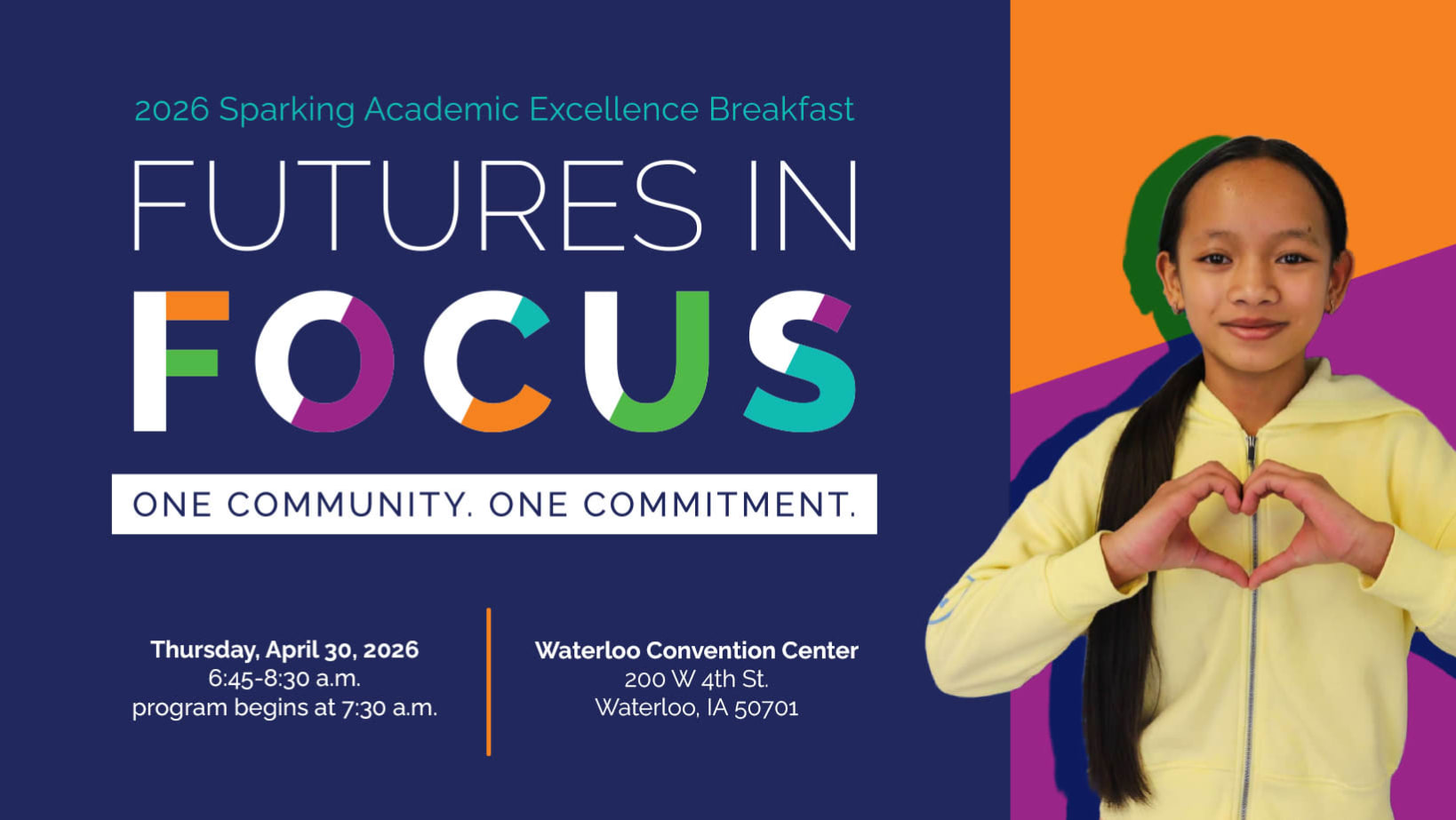 Join us on April 30 for our annual breakfast! We're excited to showcase the impact our community's investment has had on the Waterloo Schools this past year at our Sparking Academic Excellence Breakfast.
