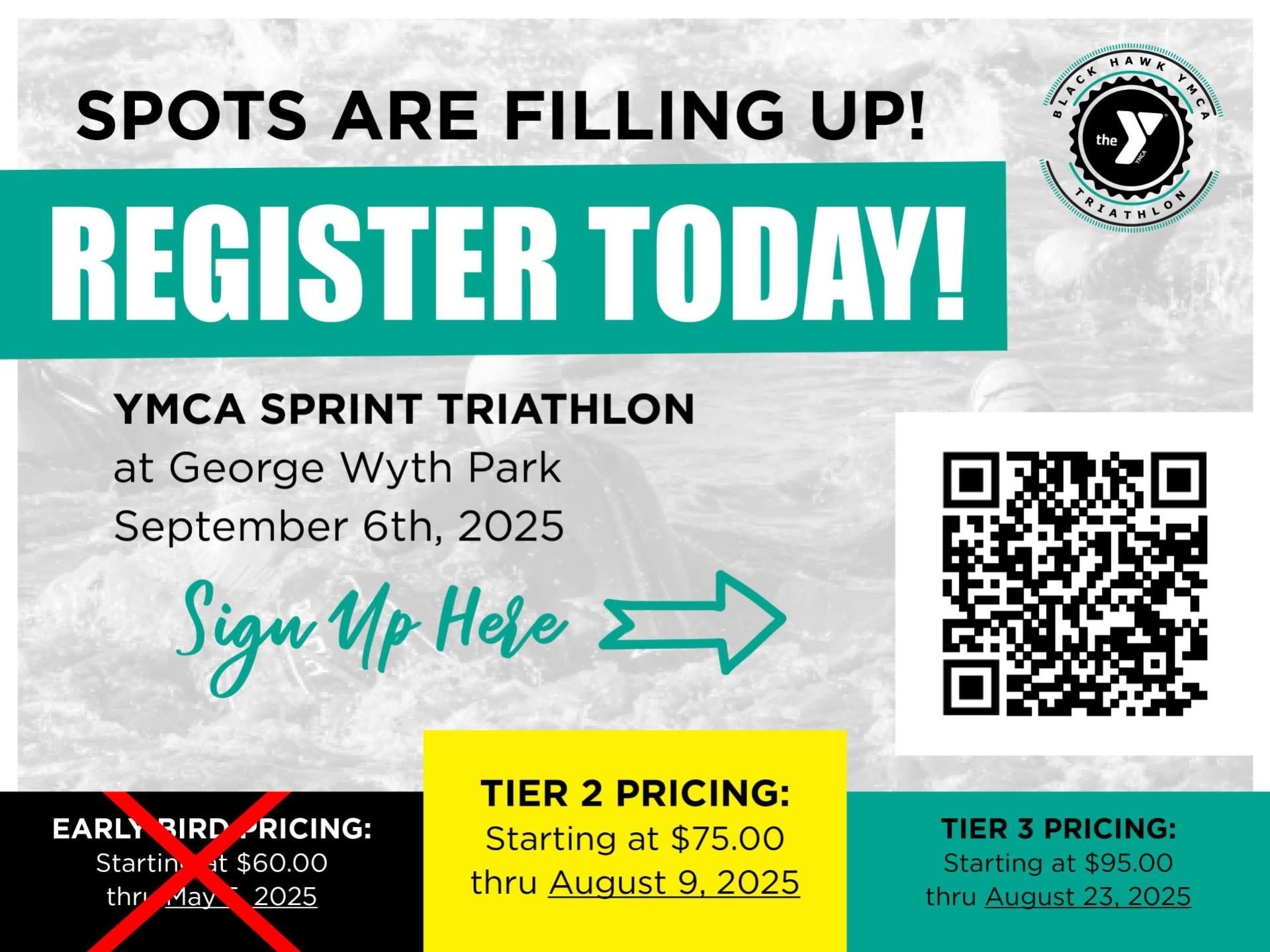 Sprint Triathlon - 500 Meter Swim - 16 Mile Bike - 5K Run Location: George Wyth State Park (3659 Wyth Rd Waterloo, IA 50703) Date: Saturday, September 6th Time: 9am